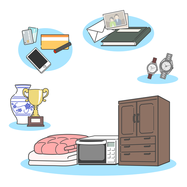 故人様がお亡くなりになった際に、故人様が所有されていたものはもちろんのこと、現金や通帳、印鑑、カード、保険証など、そして年金手帳や保険証券、土地などの権利証や年賀状や手紙、思い出の写真、貴金属類、骨董品などを家の中から探し出し確実にご遺族へ引継ぎをするサービスです。